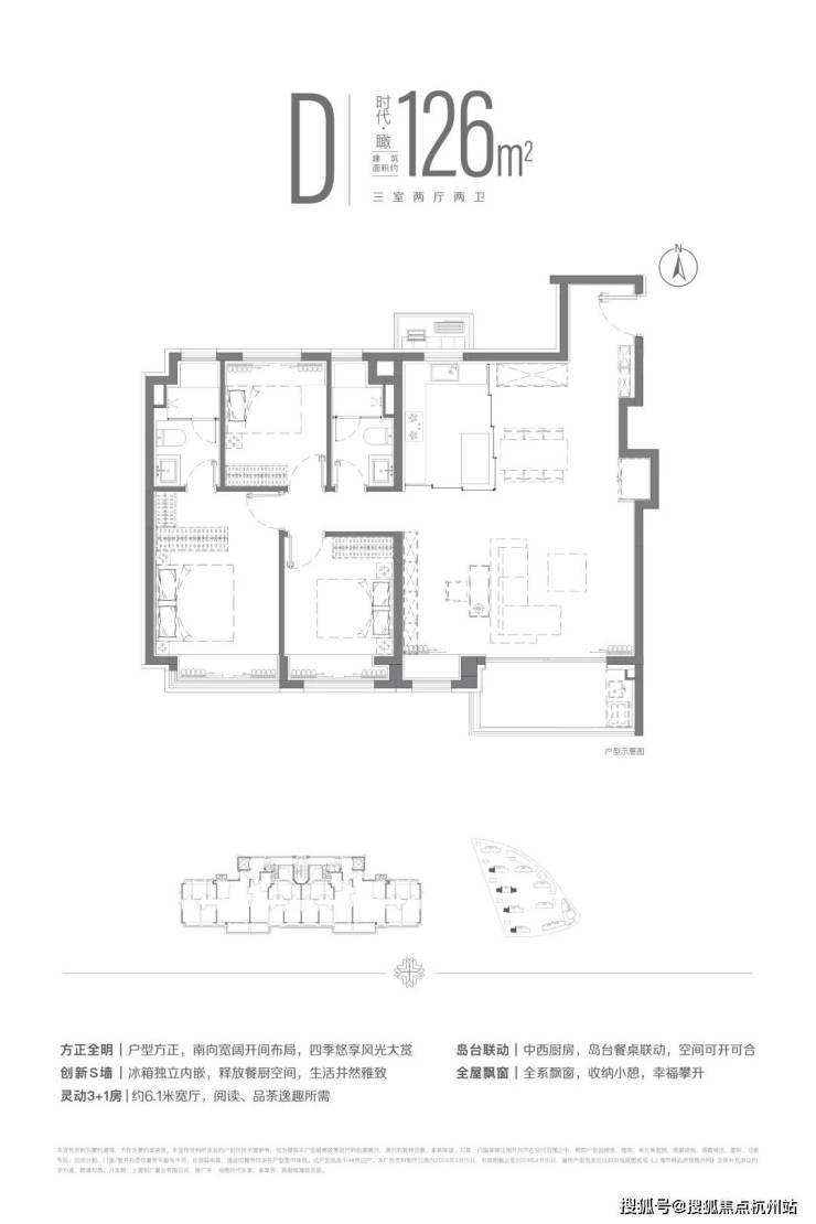 建面约126m²三房两厅两卫户型,南向3+1面宽横厅设想,让空间愈加随心而变。从卧双台盆设置装备摆设,用空间拥抱天然中的无限自由。