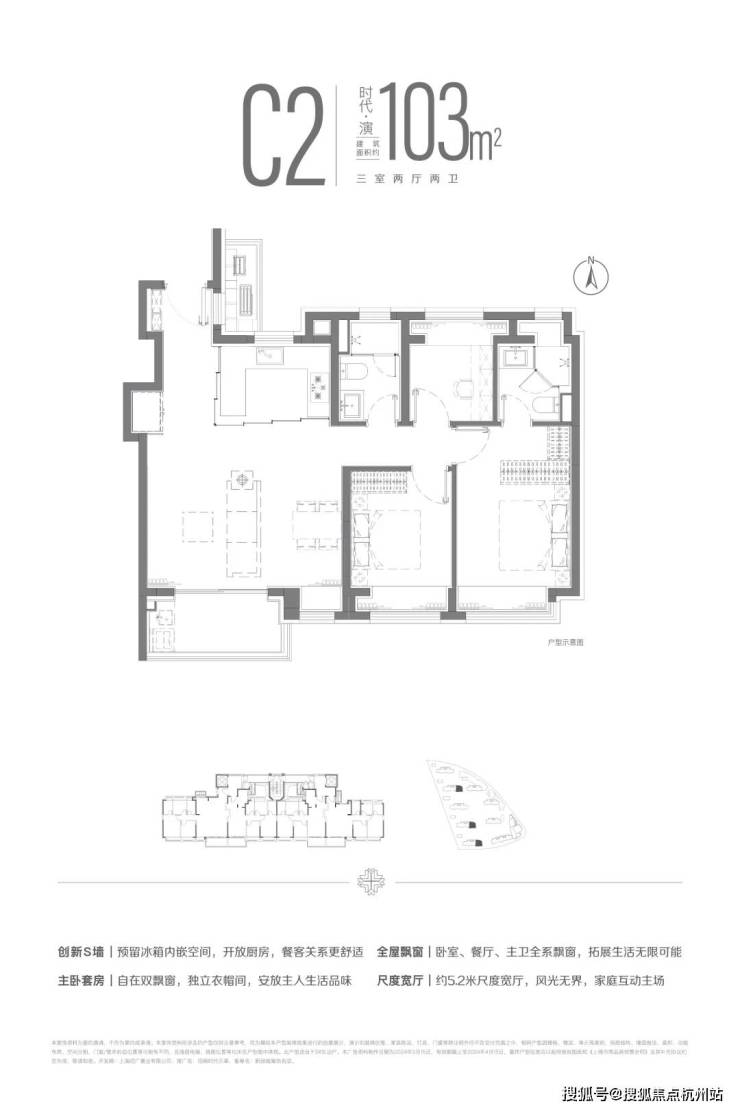 建面约103m²三房两厅两卫户型,南北双卧L型270°揽境飘窗设想,更大限度地让天然融入取自由之中,更宽阔的空间标准,让自由发展取天然之中。